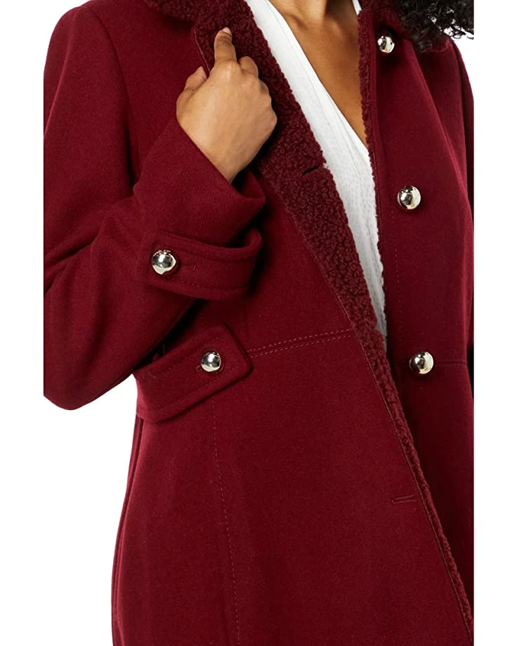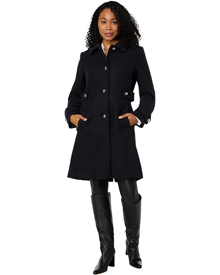- Get it all covered with Kate Spade New York® Single-Breasted Wool Coat with Sherpa Collar jacket when it’s chilly outside.