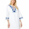 - Eye-catching contrasting embroidery on the neckline, collar, and hemline.