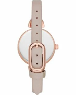 - The Kate Spade New York® Hollis – KSW1548 watch lends a delicate style with a round rose gold-tone metal case with bracketing heart details.