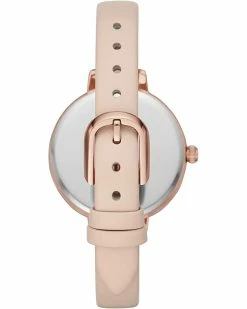 - The Kate Spade New York® Metro Watch showcases a round stainless steel gold-tone case, adjustable leather wrist strap, traditional buckle closure, and mother-of-pearl dial face with floral detail.