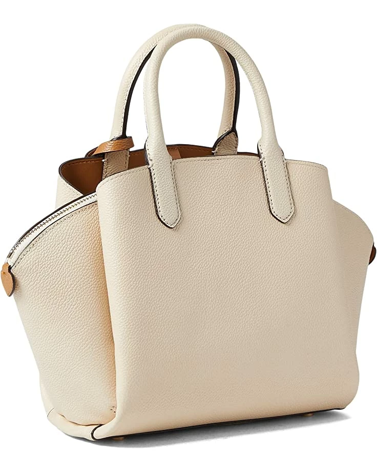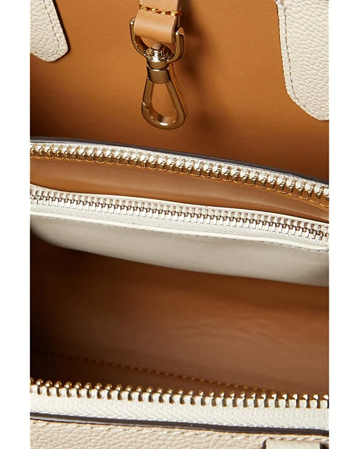 This is a great everyday bag. I was worried about it being too mini, but it fits everything I need. I was previously using the Margaux Medium Satchel, and all of the stuff I had in that bag fits in this one. I was also worried about the brown being too dark but was pleasantly surprised it’s actually a nice lighter brown/tan. This color really matches any outfit. The only negative thing I can say about this perfect bag is I wish the interior color was a more neutral color and not vibrant yellow.