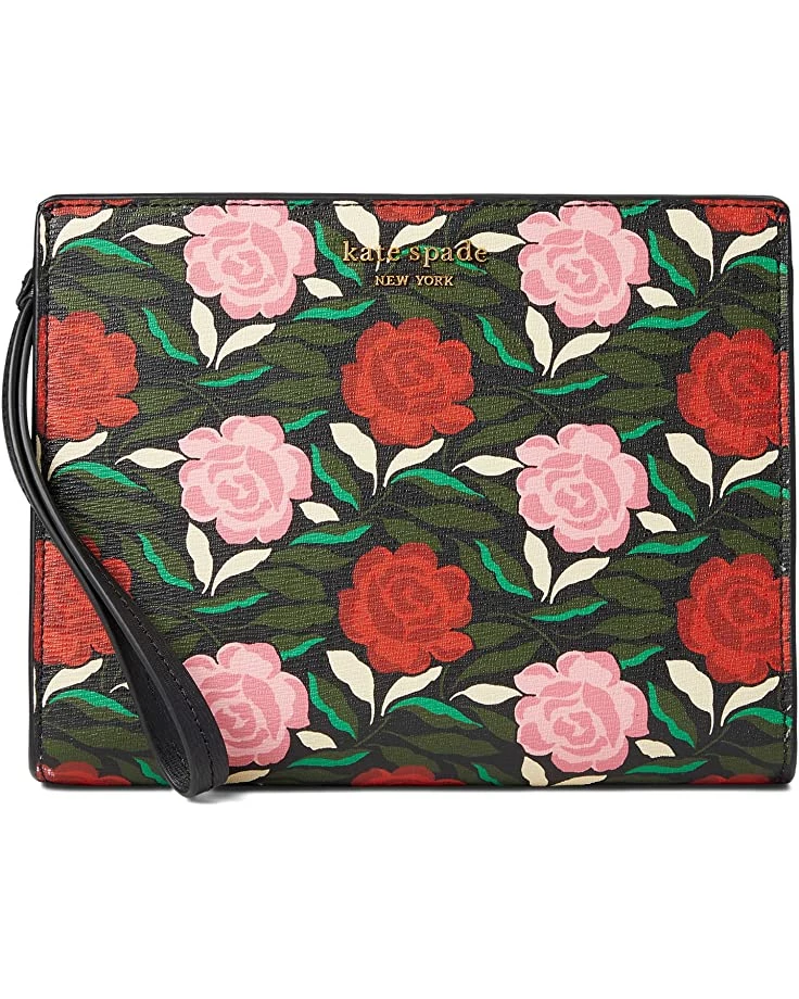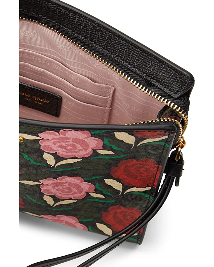 - Keep safe your money and cards getting Kate Spade New York® Morgan Rose Garden Printed Saffiano Leather Wristlet w/ Gusset.