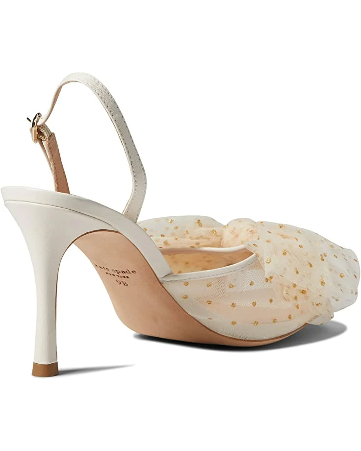 - All eyes will be on your fancy feet with the Kate Spade New York® Bridal Sparkle. These heels are crafted with a suede upper, and feature polka dot tulle and a bow detail for an elevated finish.