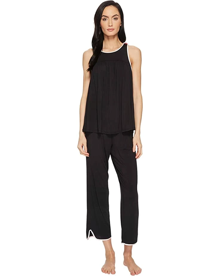 - Curl up with your tablet and tea on this wonderfully lazy morning wearing the Kate Spade New York® Black Cropped PJ Set.