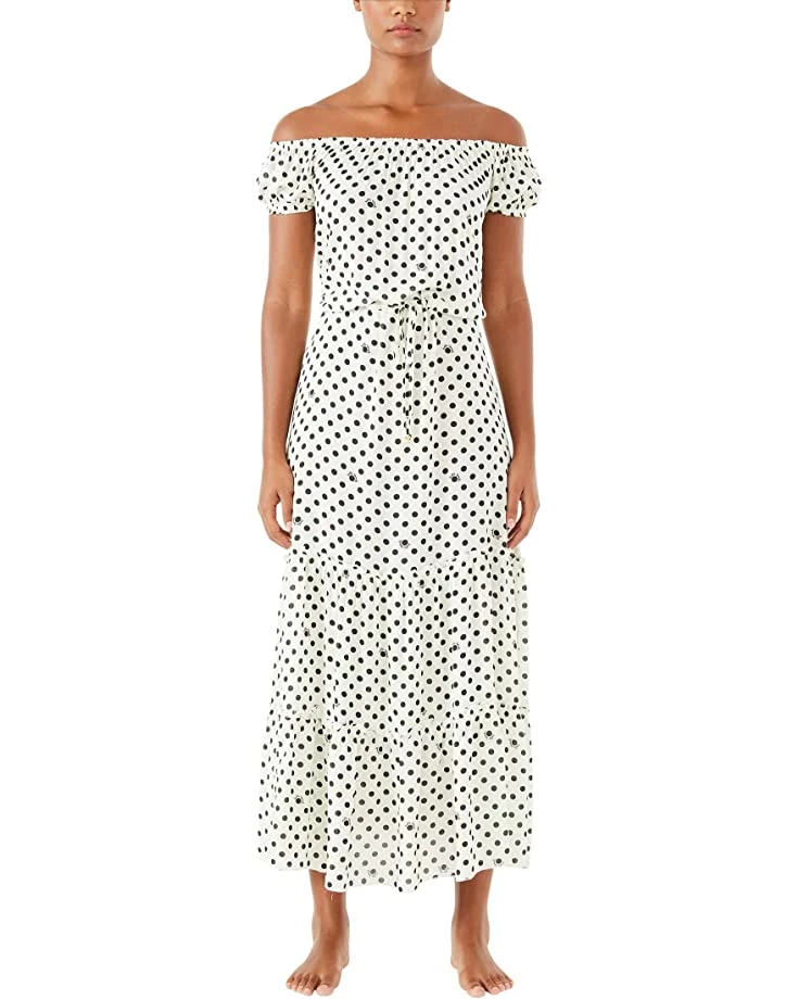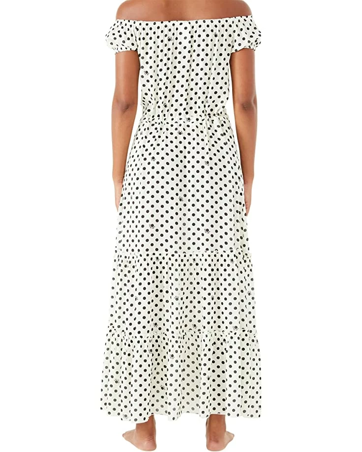 Kate Spade New York Swimwear Lia Logo Dot Off-the-Shoulder Maxi Dress