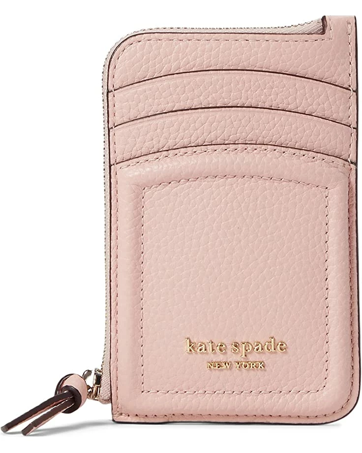 - Carry all your cards and money in the Kate Spade New York® Knott Pebbled Leather Zip Card Holder and organize them for easy accessibility.