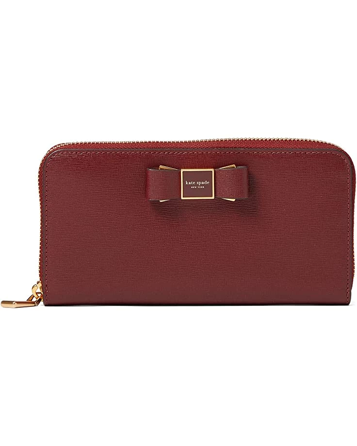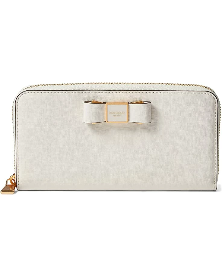 - Step up your comfort as well as style by carrying the Kate Spade New York® Morgan Bow Embellished Saffiano Leather Zip Around Continental Wallet.