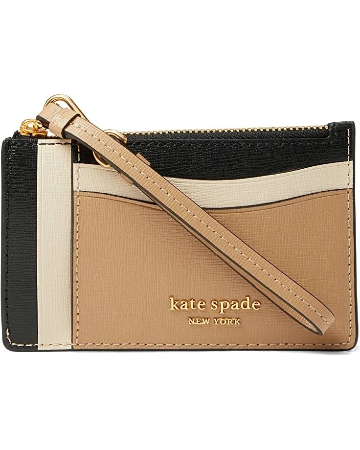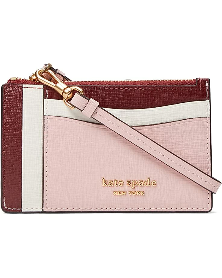 - Keep your cards secure and close at hand in the Kate Spade New York® Morgan Color-Blocked Saffiano Leather Coin Card Case Wristlet.