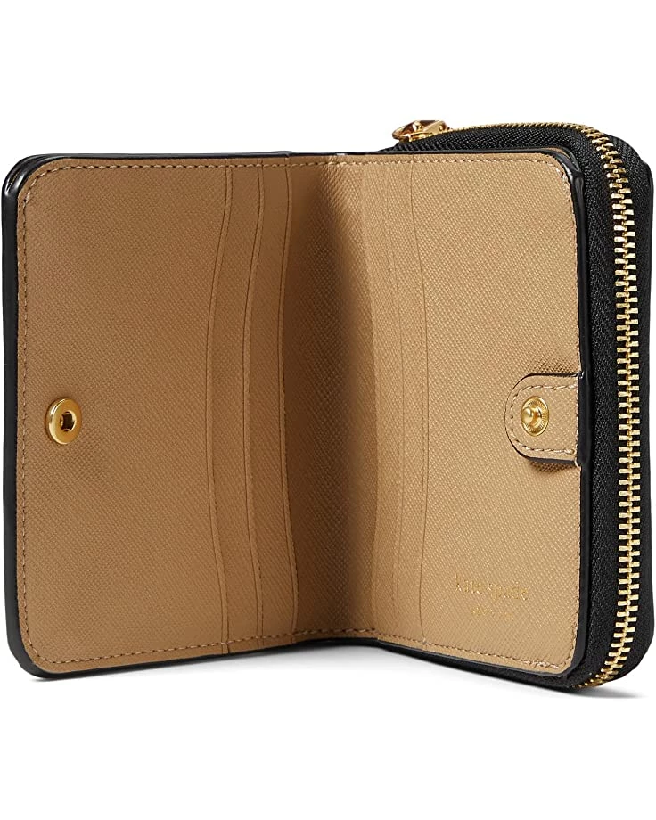 - The Kate Spade New York® Morgan Color-Blocked Saffiano Leather Small Compact Wallet keeps your essentials handy when heading out.