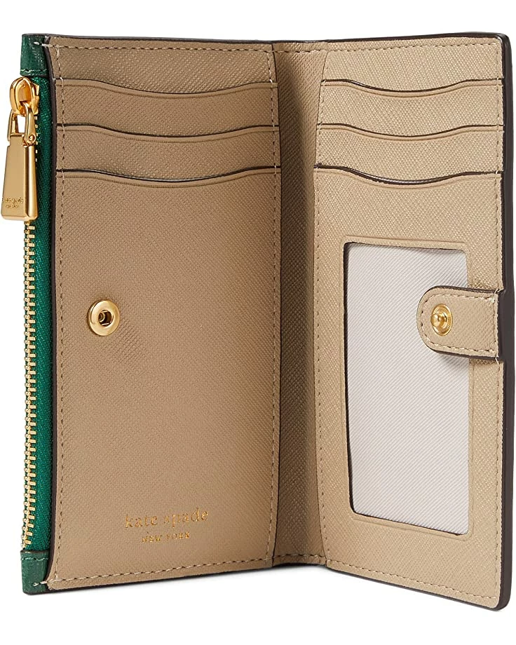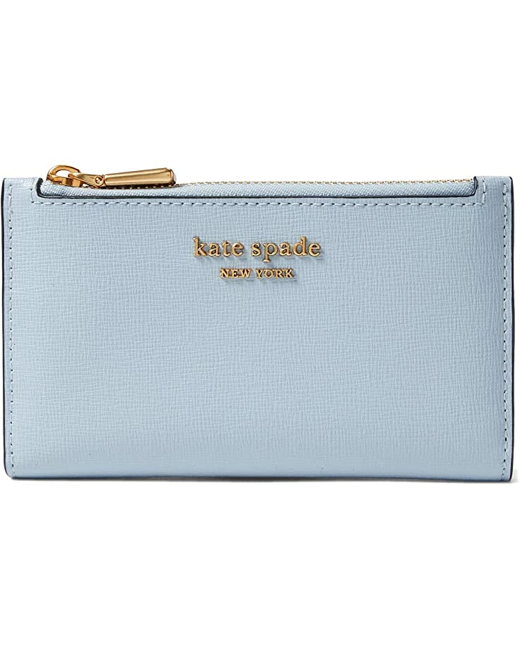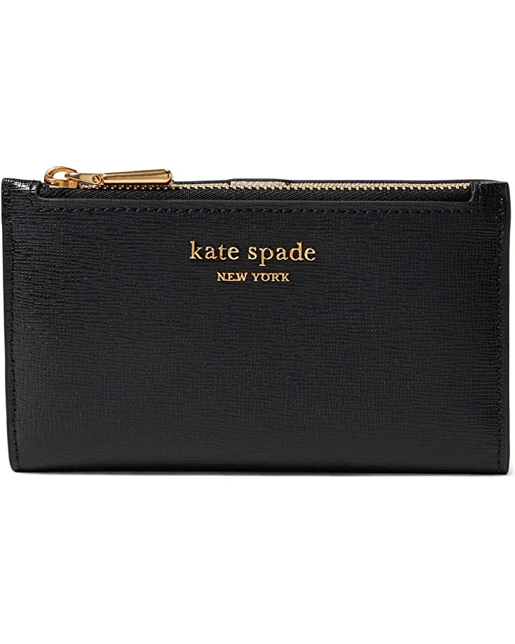 - The Kate Spade New York® Morgan Saffiano Leather Small Slim Bifold Wallet is crafted in a compact silhouette and with multiple pockets to enable you to hold your essential cards with ease and convenience.