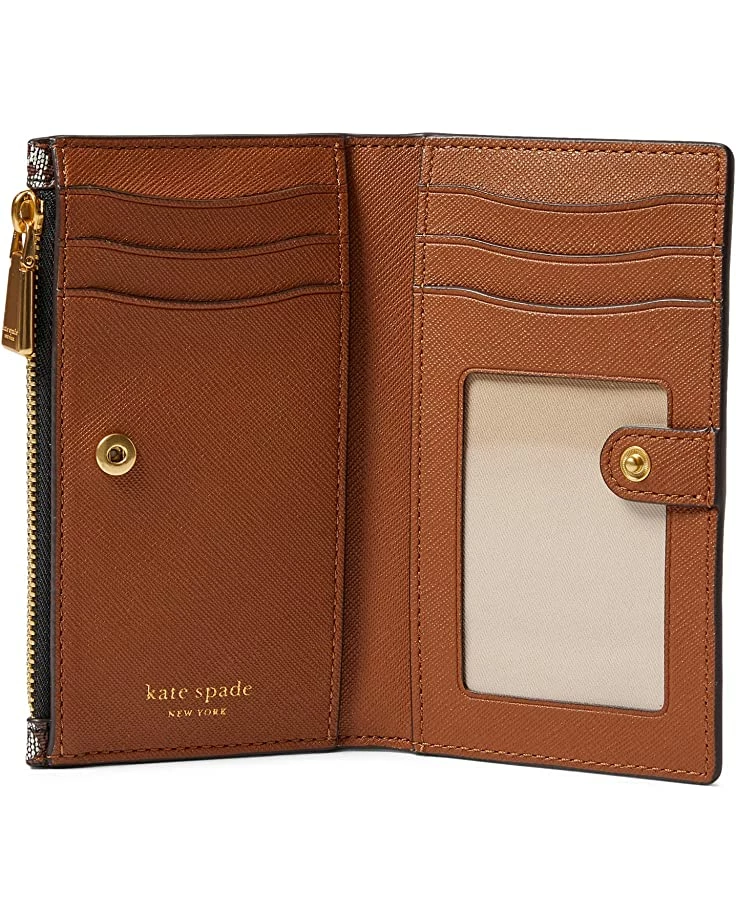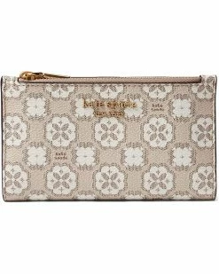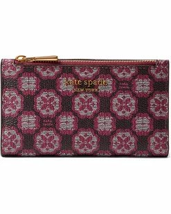 - Instantly elevate your ensembles by carrying the Kate Spade New York® Spade Flower Monogram Coated Canvas Small Slim Bifold Wallet.